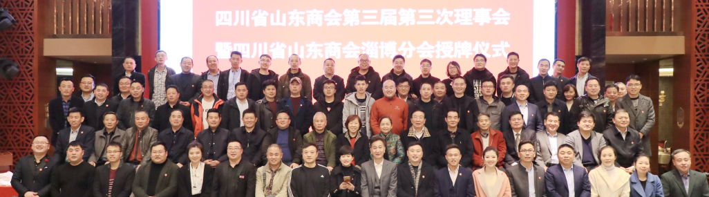 2018年11月29日,四川省山东商会第三届第三次理事会暨四川省山东商会淄博分会授牌仪式在成都食尚国际山东老家顺利举行。商会荣誉会长秦玉琴、董玉梅;商会顾问郑道光、兰体堂、田伏洲、刘建民、张志涛、郭来宝;省工商联副主席孙宁;商会会长韩东;高层次人才特聘专家饶勇、沈复......